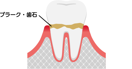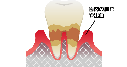 歯と歯ぐきの間に歯垢などの汚れがたまり歯肉に炎症が起きます。歯磨きの際に出血が起こる場合があります。歯を支えている骨には影響はありません。