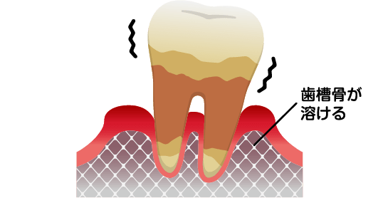 歯を支えている骨が溶かされ、最終的には歯を失ってしまうこともある感染症です。